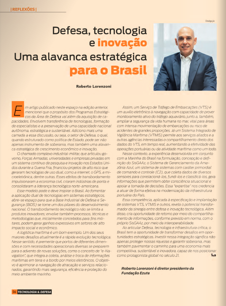 Em artigo publicado neste espaço na edição anterior, mencionei que o propósito dos Programas Estratégicos da Área de Defesa vai além da aquisição de capacidades: envolve transferência de tecnologia, formação de especialistas e a preservação de uma capacidade nacional autônoma, estratégica e sustentável. Adiciono mais uma camada nesta discussão: o setor de Defesa, quando estruturado como política de Estado, pode ser não apenas instrumento de soberania, mas também uma alavanca estratégica de crescimento econômico e inovação.